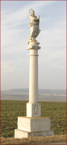 der Maria das halbe Gesicht zerstört wurde. 1993 wurde er gründlich renoviert, wobei das Relief am Sockel gegen Osten – Hl Joseph