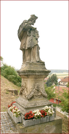 der obige Nepomuk-Statue vor der Kirche – eigentlich an ihrem heutigen Platz stehend –